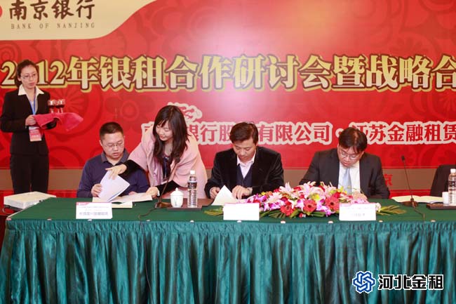 此次會議,我公司與南京銀行在綜合授信、資金融資、應(yīng)收租賃款回購、聯(lián)合融資、理財資產(chǎn)推薦、客戶推薦、投行業(yè)務(wù)等方面達成了合作共識,為致力于建立長期、穩(wěn)定、互利、共贏的全面戰(zhàn)略合作伙伴關(guān)系,不斷提升雙方的合作深度與廣度,公司總裁徐敏俊與南京銀行副行長禹志強在簽字儀式上簽署了《戰(zhàn)略合作協(xié)議》。
