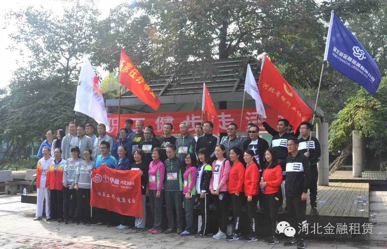 為培養員工綠色出行、低碳環保意識,讓更多員工成為健康生活方式的倡導者、實踐者及傳播者,河北金租10月16日參加了河北省銀行業協會組織的健步走比賽。本次活動在石家莊市植物園舉行,除多家金融機構隊員組隊參加外,河北省銀行業協會常務副會長孫志軍、河北銀監局非銀處處長張建印等領導也披掛上陣,與參賽選手同行鼓勁。