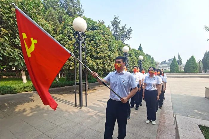鮮紅黨徽與整潔工裝呼應,堅守在黨言黨、在黨為黨的初心,在平凡的崗位中發光發熱,用實際行動加入穩經濟增投放的公司發展熱潮,詮釋實干與擔當。