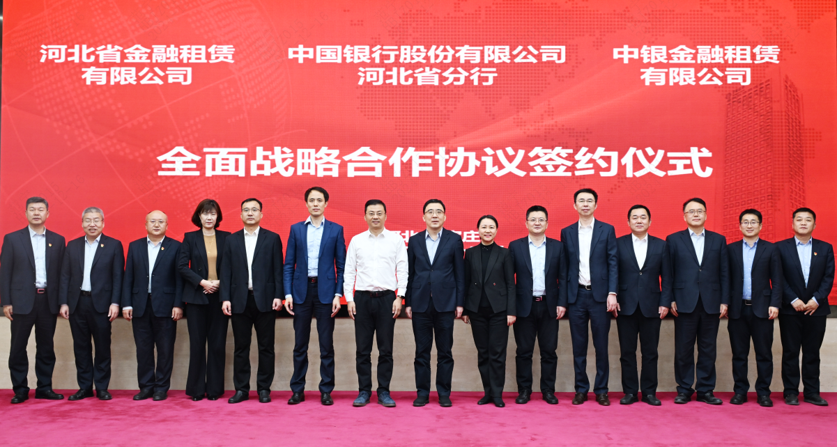 12月16日,河北省金融租賃有限公司(以下簡稱“河北金租”)與中國銀行股份有限公司河北省分行(以下簡稱“中行河北分行”)、中銀金融租賃有限公司(以下簡稱“中銀金租”)在石家莊簽署全面戰略合作協議。河北金租董事長徐敏俊、中行河北分行行長段忠輝、中銀金租總裁張麗濤等出席簽約儀式。